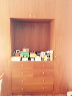Não tirei fotos do antes (esqueci-me, para não variar!!!) mas vou tentar descrever. As cortinas eram am sede, com riscas em vários tons bege e dourado, os sofás de orelhas em pele, os cadeirões estavam estofados com um tecido florido (era um tecido muito bonito, mas já denotava sinais de desgaste) e os tapetes eram de Arraiolos.