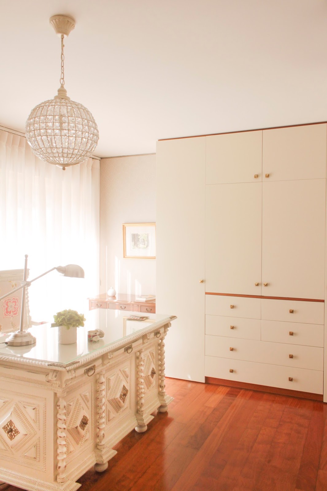 Hoje venho-vos mostrar um projeto que creio que pode ser um bom exemplo para algumas de vocês, que têm móveis clássicos, de que gostam e que tornam as casas muito pesadas, mas que não os querem alterar. Já mostrei, em projetos anteriores, a reciclagem de algumas peças antigas, que ficam maravilhosas, com uma cara nova. No entanto, neste caso, sendo uma sala toda em estilo inglês, os proprietários não queriam fazer alterações ao mobiliário, mas queriam tornar a decoração mais leve.